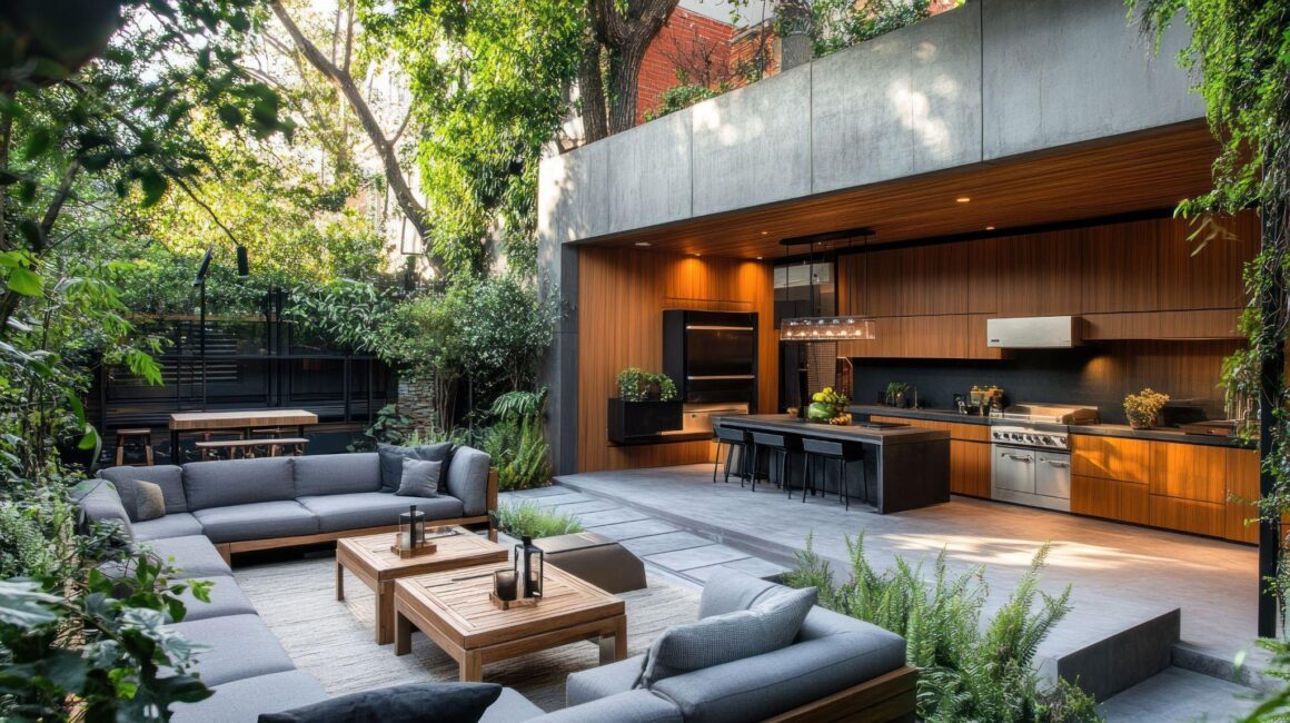 Outdoor dining areas are often the heart of a multi-functional yard. A well-planned space with a grill, prep surface, or compact outdoor kitchen encourages longer gatherings and more flexible use throughout the day.